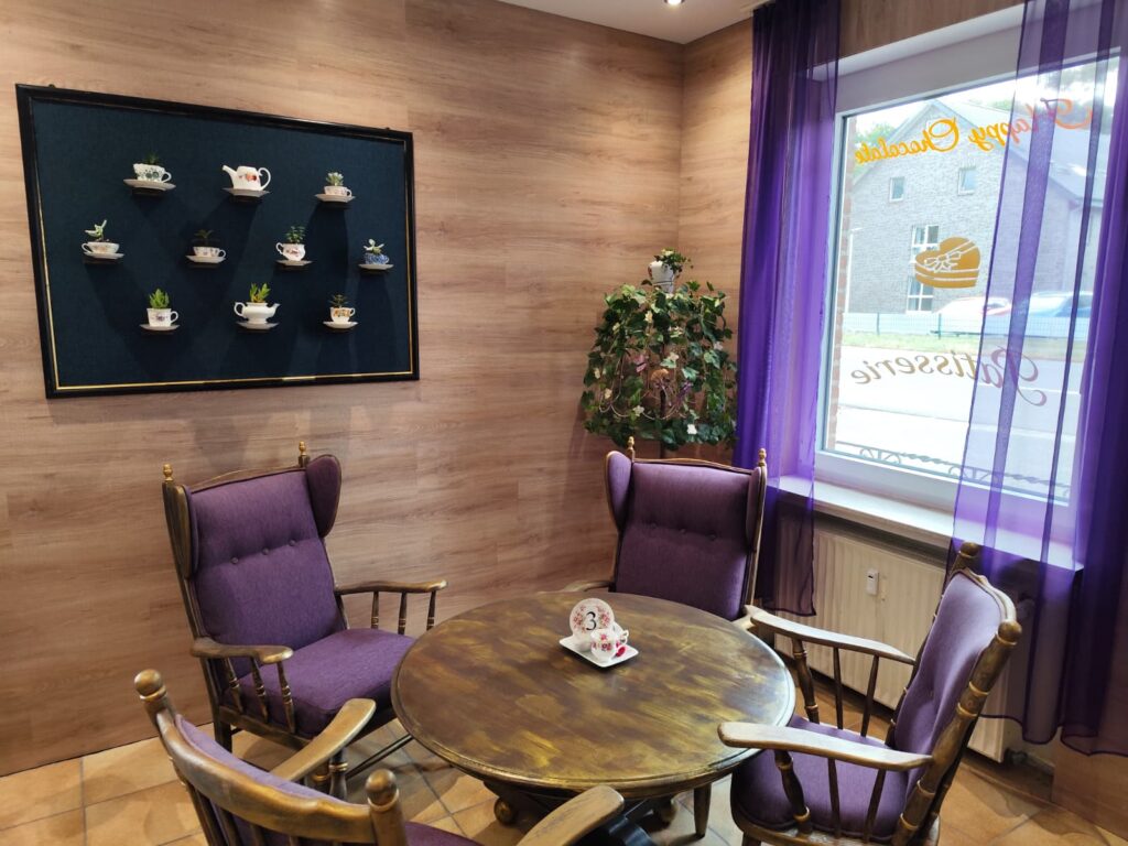 Unser Cafe hat im Innenbereich ca. 40 Plätze und ca. 20 Plätze im Außenbereich, wir bieten Ihnen eine große Auswahl an Törtchen und Pralinen.